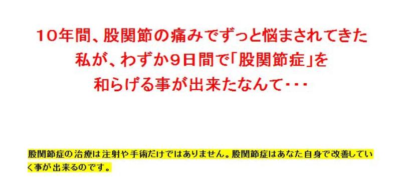 10年間、股関節の痛みでずっと悩まされてきた私が、わずか9日間で「股関節症」を和らげる事が出来たなんて・・・